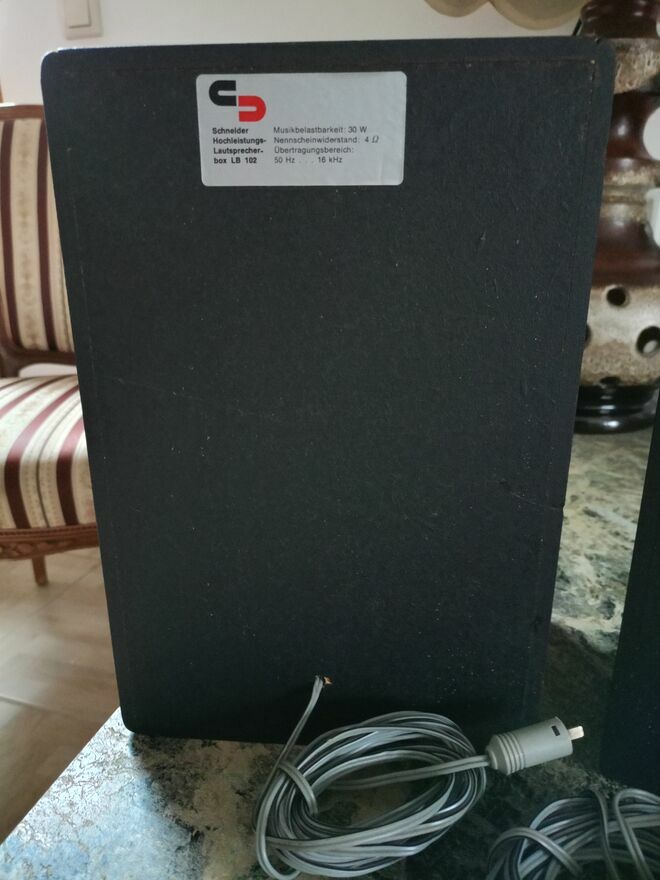 Sprzedam sprawne Kolumny Schneider Hochleistung Lautsprecher Box LB 102widoczne na zdjęciach przywiezione z Niemiec. Grają rewelacyjnie.